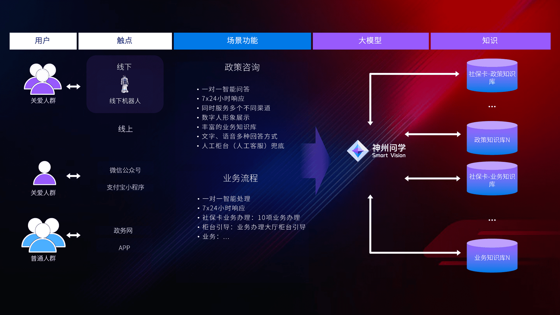 在服务大厅部署客服机器人,,,在线上应用和小程序配置客服数字人,,,724小时为群众解答常规问题,,,客服机器人无法处理的,,,转现场人工处理。。。。
